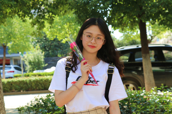 图为收到玫瑰花的大一新生 摄影:黄娟