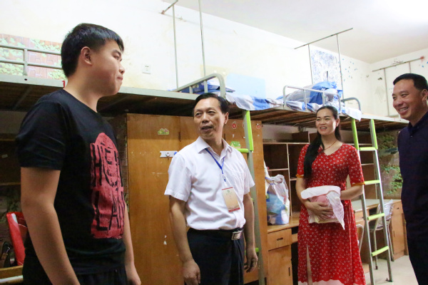 图为张安富校长(左二)去学生寝室了解大一新生情况 摄影:唐明悦
