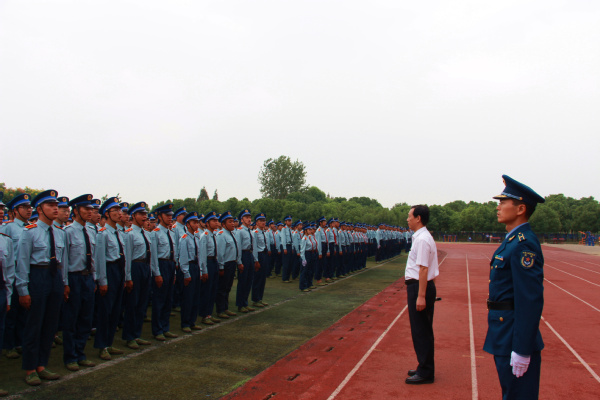 图为张安富校长检阅军训方阵 摄影:向慧