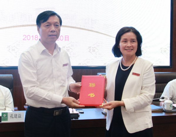 图为彭秀春董事长为张安富同志颁发学校顾问聘书 摄影:葛诗瑶