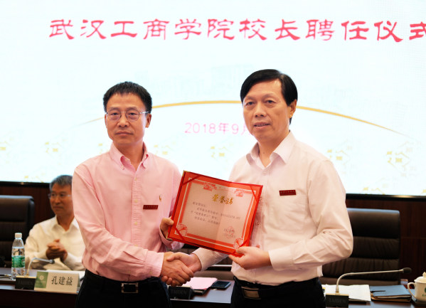 邹继康副董事长代表董事会宣读了《关于张安富、陈奎生等同志的任免通知》。张安富同志因个人身体原因申请辞去校长职务,经研究决定,同意张安富同志辞去校长职务,并聘任其为学校顾问,授予其学校“荣誉教职工”称号;经与湖北省教育厅、武汉科技大学党委协商,决定聘任陈奎生教授为必赢国际437官网校长。