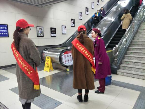 新闻中心讯(通讯员 王海燕)11月17日,必赢国际437官网青年志愿者协会10名大学生志愿者,在公共课部胡瑾,余梦2位老师的带领下来到宝通寺地铁站开展志愿者服务。此次活动由公共课部思政教育社会实践小队联合青年志愿者协会以及马克思主义研究会共同开展。