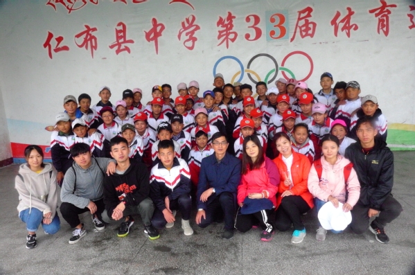 图为“火凤凰”支教队与当地中学学生合影