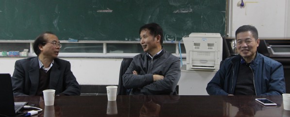 图为张晓龙院长(左)正在与陈奎生校长(中)、孙宝林院长(右)交流 摄影:谭明明