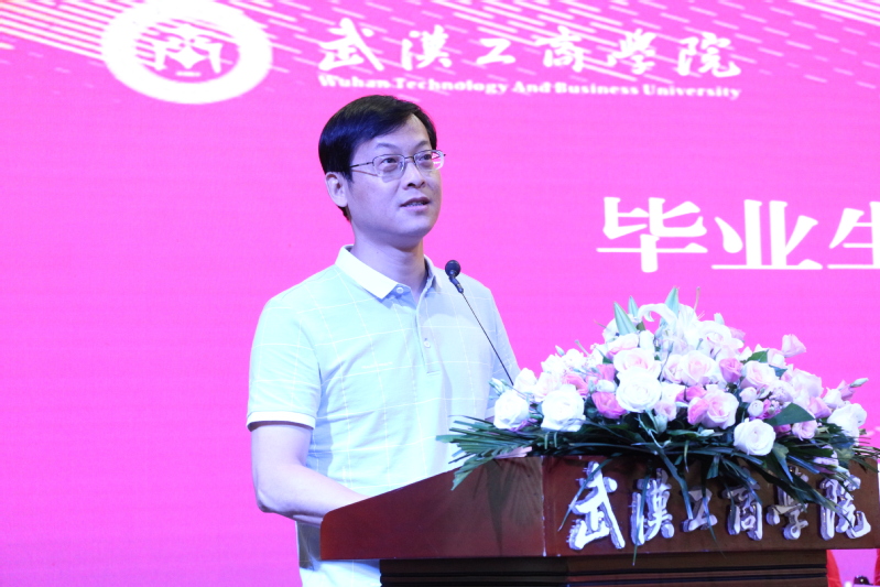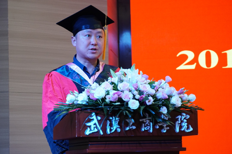 电子商务学院学生张思志代表全体在校生发言。他向即将毕业,在新的人生舞台上挥洒青春的学长学姐们表达了最真挚的祝福,并表示将继续努力,铭记学长学姐的叮嘱,不负父母的期望、学校的厚望。他说:“学长学姐们奋斗的故事,学院的老师们经常分享给我们听,我们羡慕的同时也都暗下决心,争做榜样,再创辉煌。”
