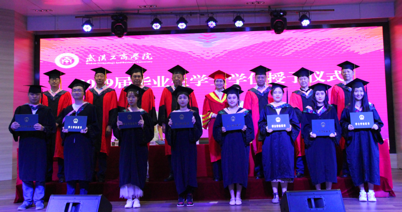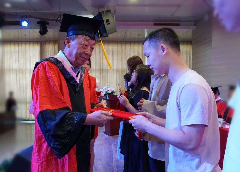 最后,学校学士学位评定委员会全体成员为获得学士学位的毕业生代表一一拨穗,授予学位并合影留念。