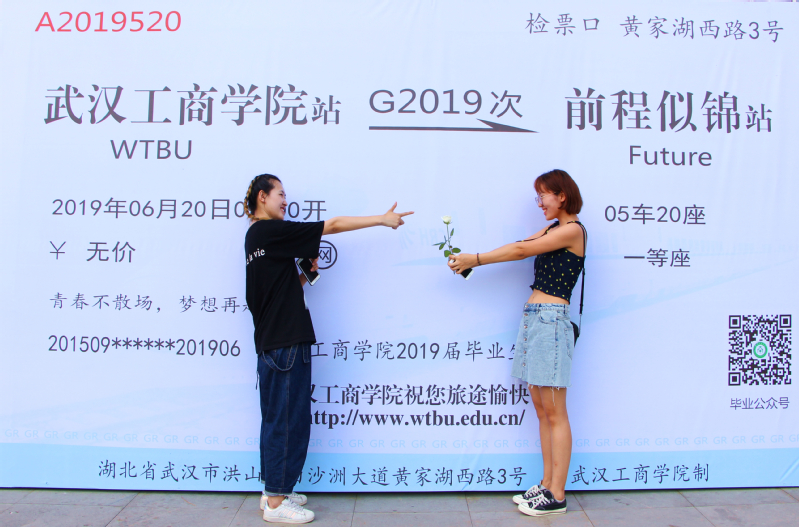 记者在现场发现,毕业典礼当天的现场布置也十分走心,校园内矗立着巨幅的“高铁票”,票面上记录了2019届毕业生大一入校和大四毕业典礼的日期,并写上“必赢国际437官网站——前程似锦站”与“青春不散场、梦想再起航”的美好祝福,祝贺学生们顺利毕业起航人生新征程,让不少毕业生直呼暖心。新颖的毕业背景墙吸引了众多毕业生花式“比心”拍照留影,用一张张充满“仪式感”的毕业照片纪念自己的大学时光。