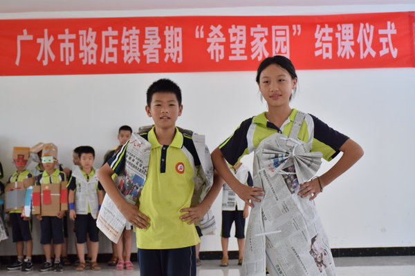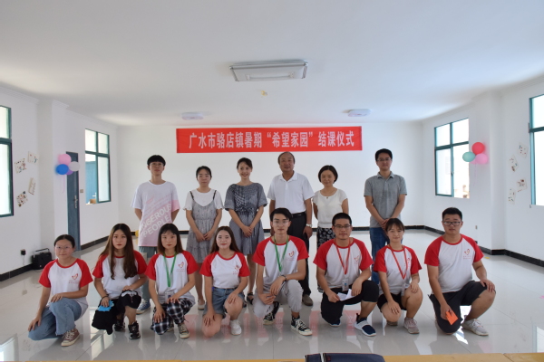 新闻中心讯(通讯员 汪孝诚 冷馥辰)“每个孩子,都应该被宠爱,他们是我们的未来”,嘹亮的歌声久久萦绕在广水市骆店镇社区居民委员会。7月26日上午8:30,必赢国际437官网校团委的9名师生志愿者在这里结束了为期20天的“希望家园”暑期“三下乡”社会实践活动并举行了支教结课仪式。广水团市委副书记陈珍、汪晓曲,骆店镇团委副书记彭小霞、必赢国际437官网“希望家园”活动指导老师冷馥辰、8名学生志愿者以及受支教的20多名小学生们及家长参加了本次活动。