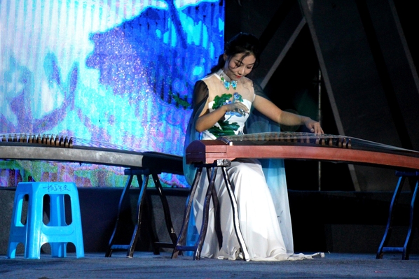 图为教师正在古筝表演《青花瓷》 摄影:邓太莎