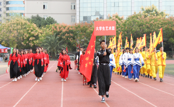 桂裕清副校长致开幕词。他表示,学校积极响应党和国家提出的“强化体育课和课外锻炼,促进青年学生身心健康、体魄强健”的号召,坚持以提高学生的综合素质为目标,促进学生的全面发展和自我完善。“学校秋季运动会作为展示体育教学成果和体育运动水平的平台,希望全体运动员都能以最佳的竞技状态投入到比赛中,在充分享受体育运动带来的快乐的同时,也为自己和学院争光。”