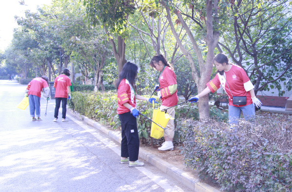 下午,学校22名城市志愿者又赶往红霞社区开展城市清洁活动,帮助社区保洁阿姨清理垃圾,并进行分类,助力武汉城市环境美化。