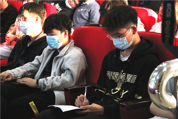 图为学生正在认真做笔记 见习摄影:王思雨