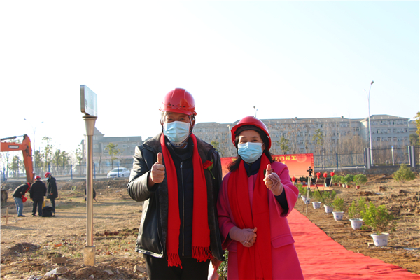 图为彭秀春董事长等领导为学校南大门建设培土奠基 摄影:孙欢欢