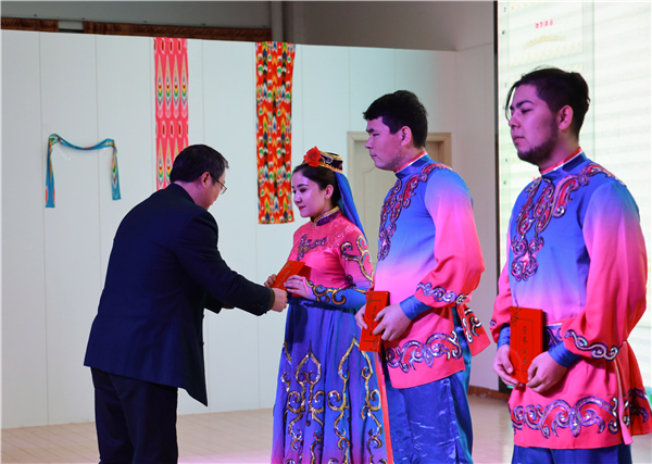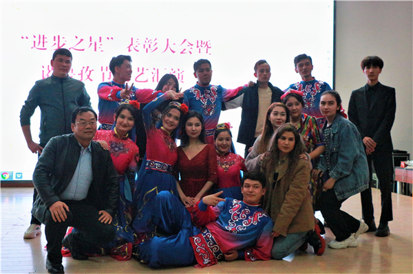 为表彰先进、树立典型,激励广大同学克难攻坚、开拓进取、努力学习,陈义文部长宣读了关于新疆籍少数民族学生“进步之星”的表彰文件,授予艾里亚尔、热孜宛古丽、阿布里米提三名同学2020年年度新疆籍少数民族学生“进步之星”荣誉称号。