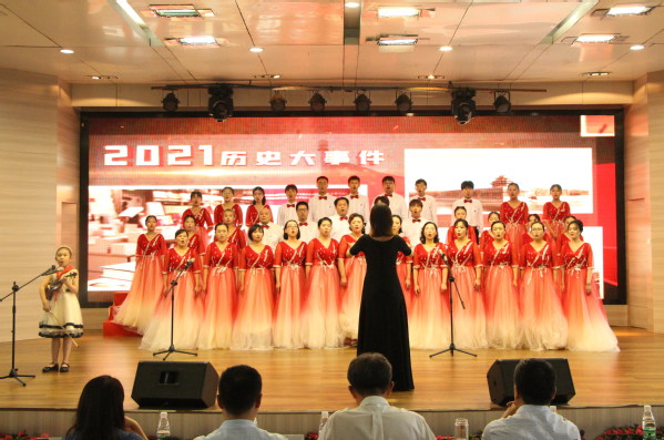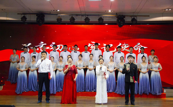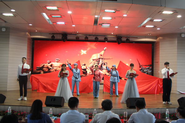 表彰结束后,校工会、学生工作部、管理学院、电子商务学院师生分别带来了精彩的庆祝汇演:舞蹈《新青年》编排创新、生动有力,诗歌朗诵《信念永恒》《跨越百年的承诺》慷慨激昂、振奋人心,歌曲《祖国你好》《没有共产党就没有新中国》恢弘大气,将爱党情、强国梦唱进了在场每一位观众的心中。