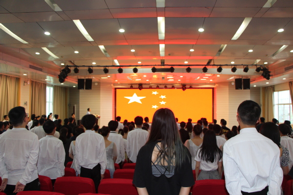 伴着庄严激昂的国歌声,全体与会人员起立,正式拉开大序幕。