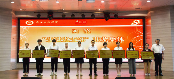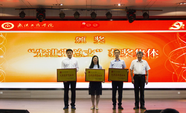 图为桂裕清副校长为“先进党总支“获奖集体颁奖 摄影:陈爱媛