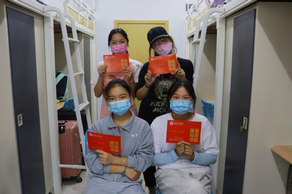 随着新同学们的陆续到来,学生志愿者们热情地接过他们手中的行李,认真测温、查验录取通知书及核酸结果。一声声贴心的问候、一句句热心的交谈都饱含学长学姐们对新生满满的关怀。
