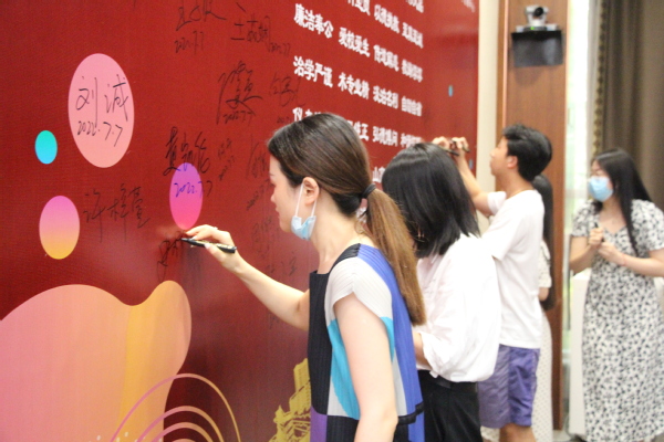 图为新教师在师德铭上签名 摄影:苏文豪