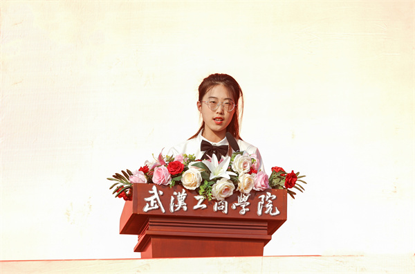 2019级学生许玲敏代表老生勉励学弟学妹:勤奋学习是青春远航的动力,增长本领是青春搏击的能量,作为新时代大学生,生逢盛世,重任在肩,应主动扛起时代赋予的责任与担当,在青春的赛道上奋力奔跑,在成长的路上披荆斩棘!