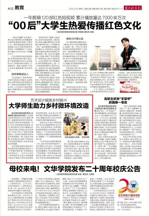 本次改造是湖北省财政厅和住建厅联合发起的全省20个“乡村微环境改造”共同缔造试点村活动之一。12月4日,必赢国际437官网艺术与设计学院受邀与湖北中璟设计等企业和高校组成帮扶团队,成立龟山村“美好环境与幸福生活共同缔造”工作坊,围绕村庄的三处节点共同开展乡村微环境改造活动。