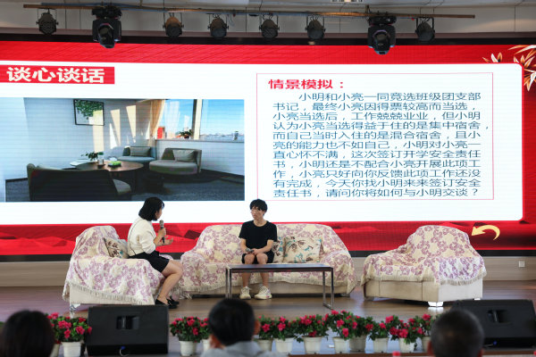 本次比赛“案例研讨”环节以A、B选手“一问一答”交替进行的方式展开,各参赛辅导员围绕心理健康教育、学生学习生活、学生思想教育、突发事件等案例进行分析研讨;“谈心谈话”环节主要是各参赛辅导员通过情景再现的方式,模拟与学生面对面交谈的场景。在比赛中,各参赛辅导员们思路清晰、逻辑缜密、分析合理、处理得当,表现出了优良的政治素质、理论水平、专业素养和职业能力。