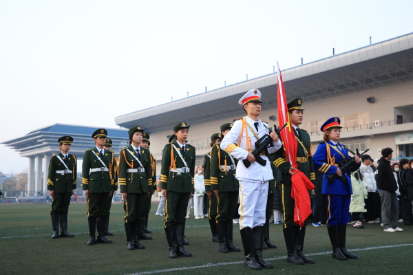 早上7点,迎着朝阳,国旗护卫队整齐划一、步伐铿锵,护卫着鲜艳的五星红旗入场。伴随着雄壮的国歌,旗手振臂一挥,鲜艳的五星红旗徐徐展开,在大家的注目礼中,迎风飘扬在校园上空。庄严的升国旗仪式感染着每一名学子,大家齐声高唱国歌,抒发心中的爱国情怀。