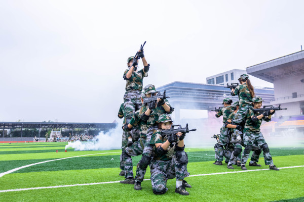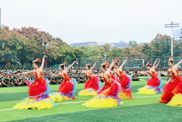 由1500余名新生组成的花样方阵成为全场焦点,他们依次变换出“1919”“五四运动”“1921”“红船会议”“1949”“天安门”“中国我爱你”等造型,致敬祖国,现场十分壮观。队员们齐声高呼“听党指挥,能打胜仗!”“祖国万岁!”“正义必胜,和平必胜,人民必胜!”等铿锵誓言,将对历史的致敬、对祖国的热爱与对和平的捍卫融为一体,深情回溯了党的百年光辉征程,并以此特别方式致敬抗战胜利80周年。
