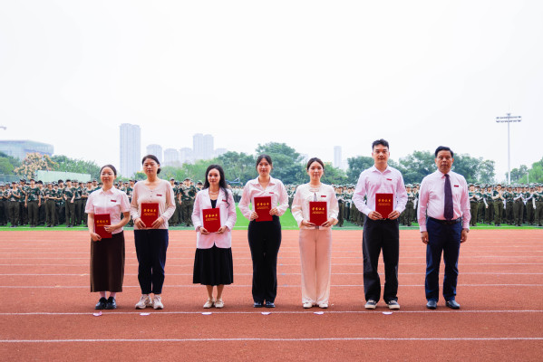 汇演结束后,学生工作部部长陈义文宣读《关于表彰2025级优秀军训方队、优秀军训学员的决定》文件,与会部队领导、学校领导分别为获奖代表颁奖。