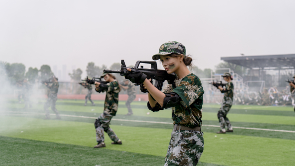 压轴登场的是战术方队。他们目光坚定,手持“钢枪”,在模拟的战场硝烟中,进行了一场融合战术队形变换与基础战术动作的实战化演练。队员们行动敏捷,配合默契,冲锋、掩护、搜索、突击,每一个环节都紧张逼真,展现出了良好的战术素养和团队协作精神,赢得了现场阵阵热烈的掌声。