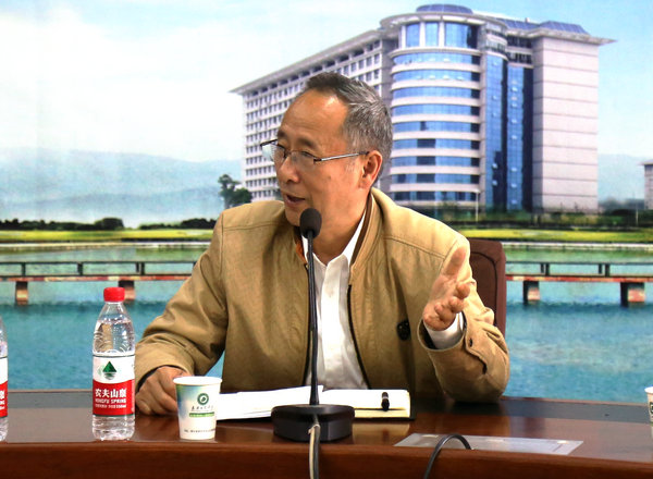 图为张培林院长向师生介绍Joshi教授研究 摄影:王成杲