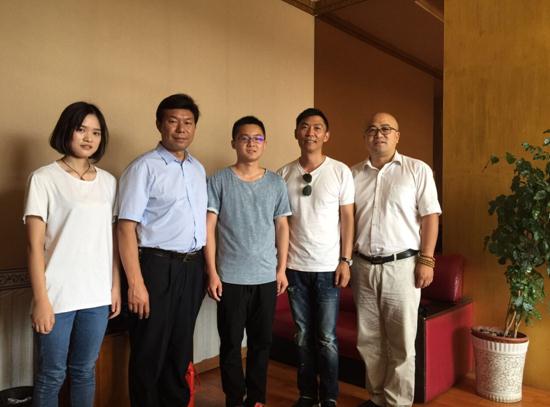 图为:朱于龙先生(右二)与校党委书记陈伟、管理学院副院长陈振祥、