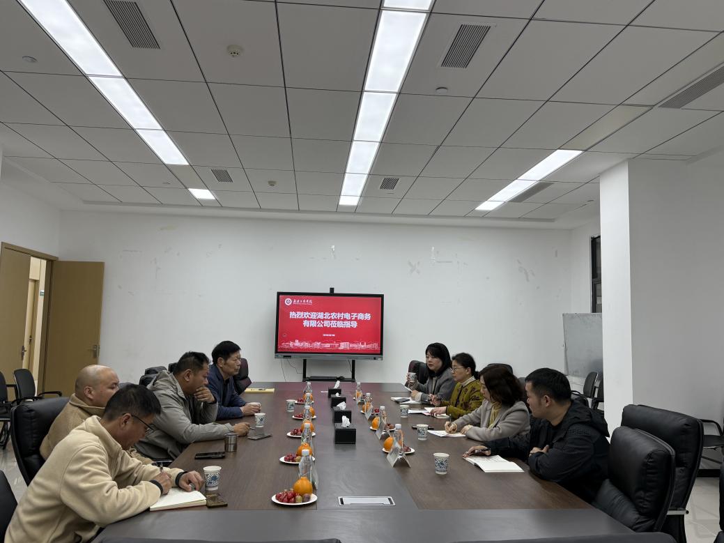 新闻中心讯(记者:郭怡含)3月19日,电子商务学院与湖北农村电子商务有限公司就推进校企合作于学院办公楼225会议室召开会议,本次会议旨在培养新时代农村电商人才,为乡村振兴注入数字化活力。湖北农村电子商务有限公司董事长严朝晖、总经理张婧、市场运营部部长王晶、市场运营部运营主管陈时一行,与电子商务学院院长王学东教授、党总支书记杨睿、办公室主任冷馥辰、分团委书记朱懿、教师代表艾洪波、社会合作与发展部姚军老师共同出席。