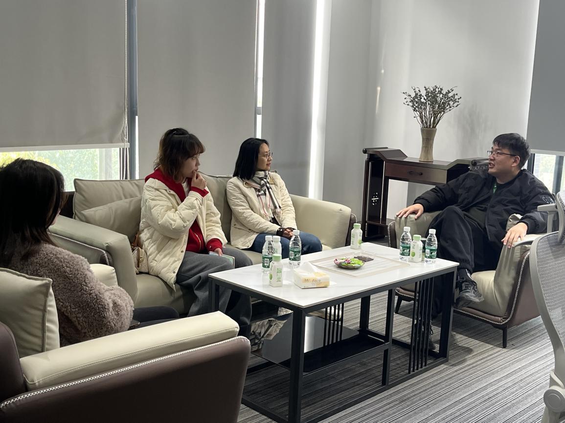 胖虫科技有限公司负责人热情接待,双方在办公室进行了深入的座谈交流。负责人对公司的发展历程、企业文化以及行业现状做出详细介绍。魏院长也向负责人介绍了电商学院的基本情况,并表示学院一直注重实践教学和校企合作,希望通过此次走访能够进一步了解企业需求,调整和优化人才培养方案,为企业输送更多符合市场需求的高素质人才。